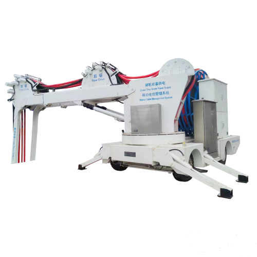 During the docking of the ship, the swing-arm cable management system swings the overhang arm to the side of the ship by turning or expanding, and the shore power connection plug is close to the shore power connection on the side of the ship to realize the connection of shore power.